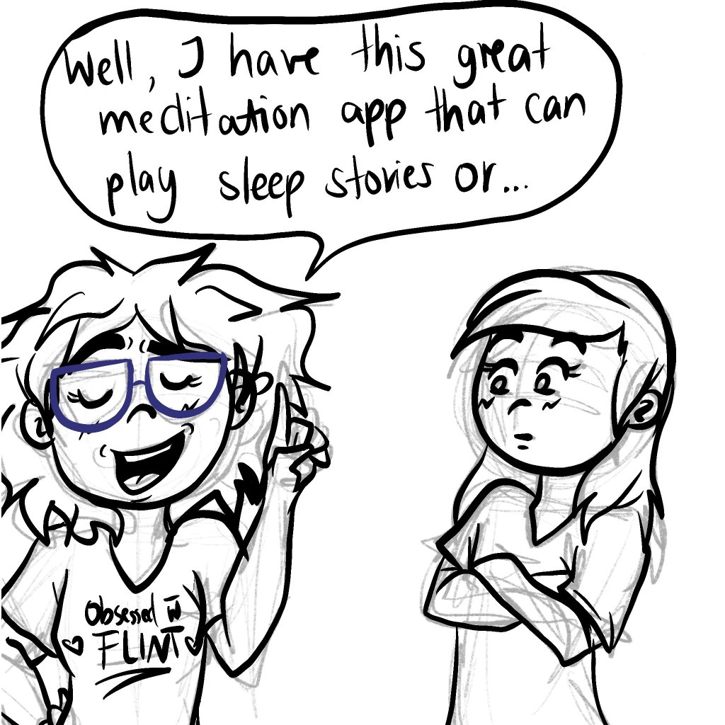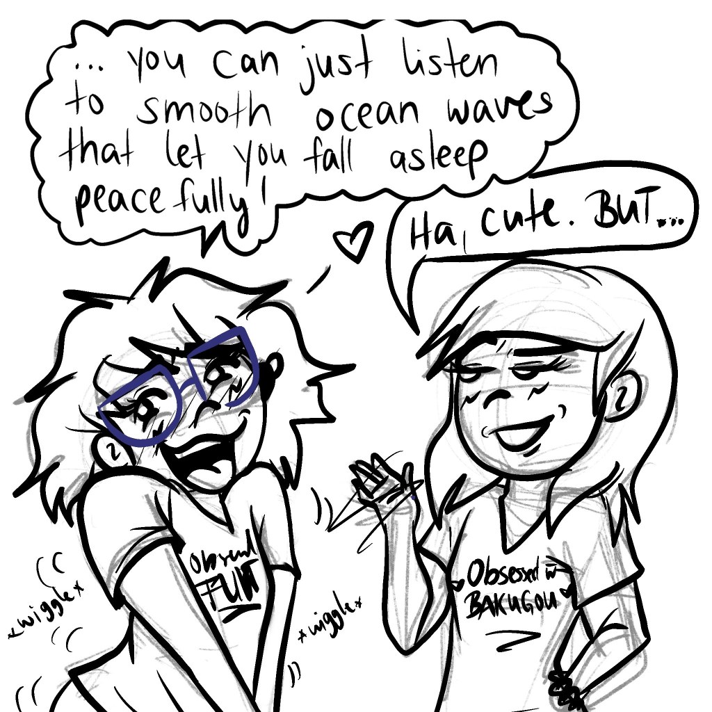 This actually isn’t a conversation that happened. But I just thought it’s hilarious when Jenny told me about what she likes to listen to while falling asleep.