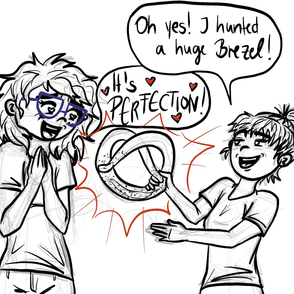 This happened when we still lived together. Man, I LOVE these huge Brezels. They’re the best. Like my friends. 😉