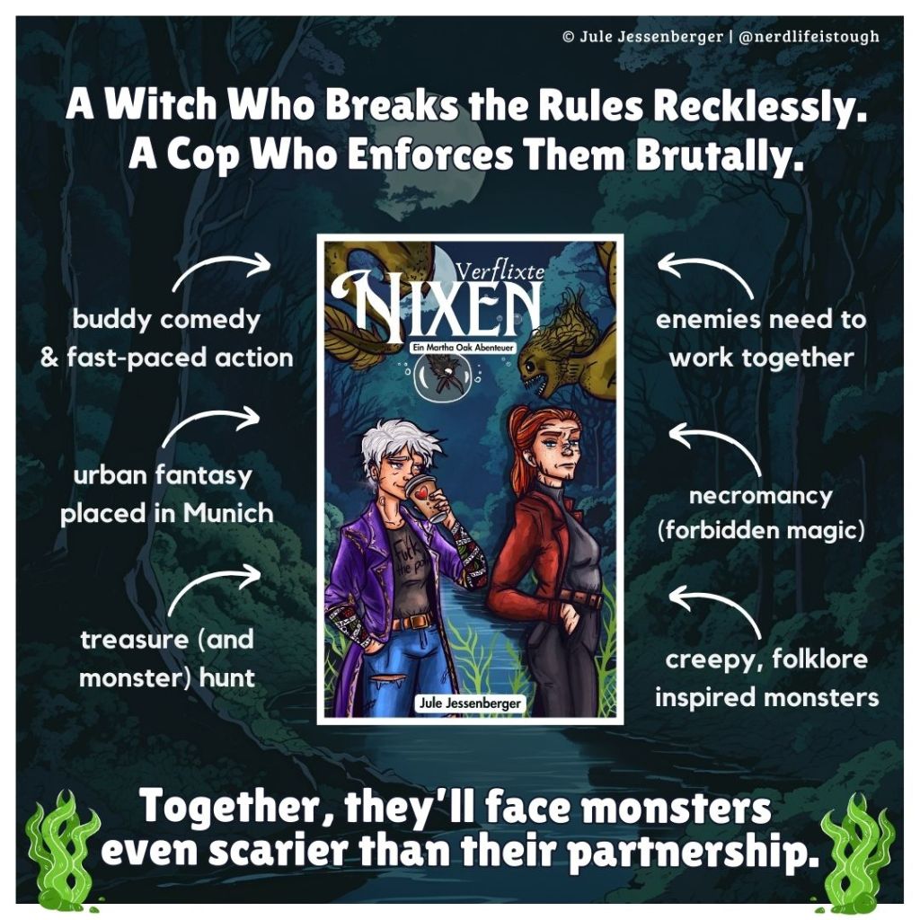 Darned Mermaids (Verflixte Nixen 🇩🇪) is an urban fantasy, buddy comedy perfect for fans of the “grumpy vs. sunshine“-dynamic, absurd monster hunts, and action as sharp as the protagonists’ biting dialogue.